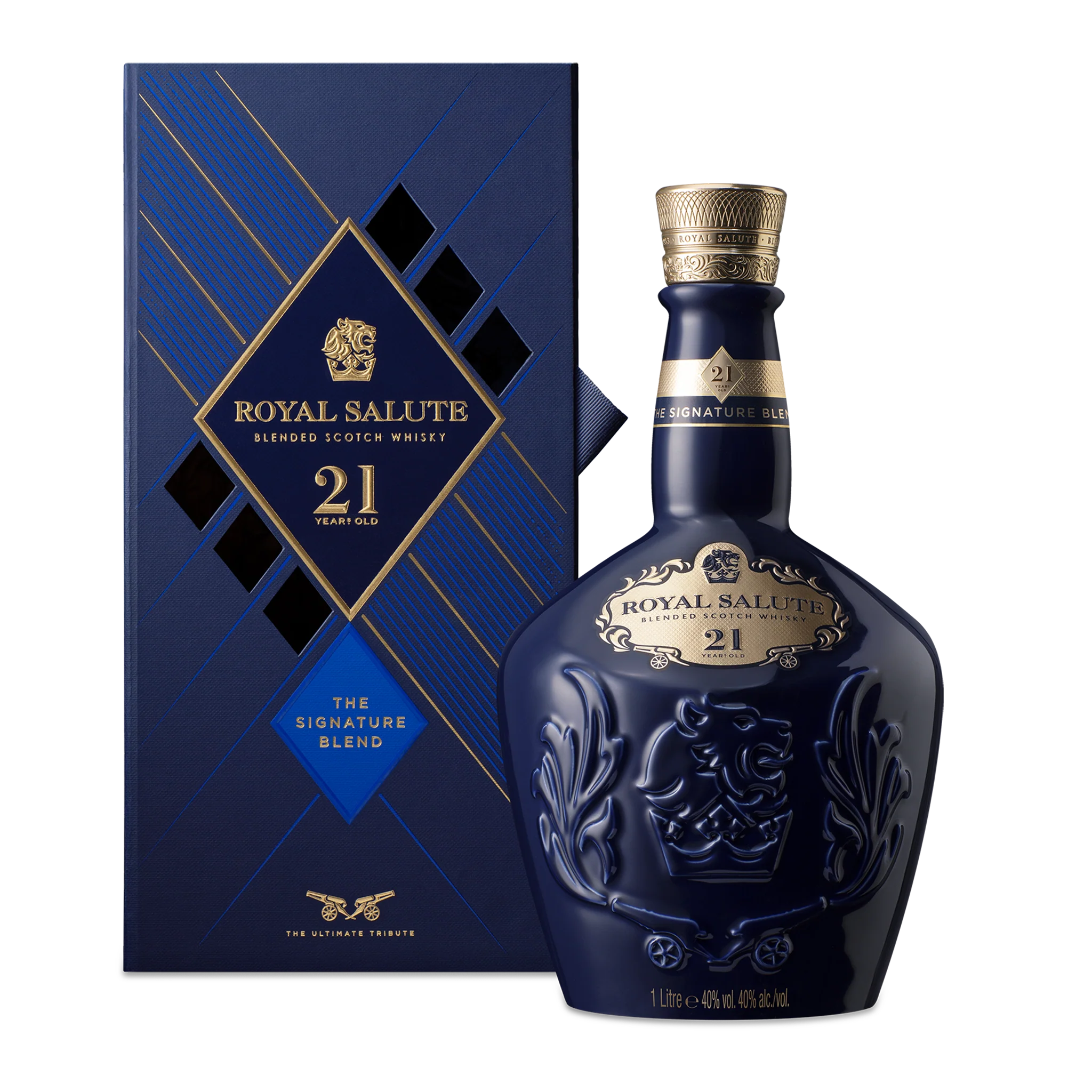 Homazhi i fundit për uiskit skocez. Royal Salute 21 Year Old The Signature Blend është i fuqishëm dhe mbresëlënës dhe është rezultat i përzierjes mjeshtërore dhe maturimit të patëmetë.