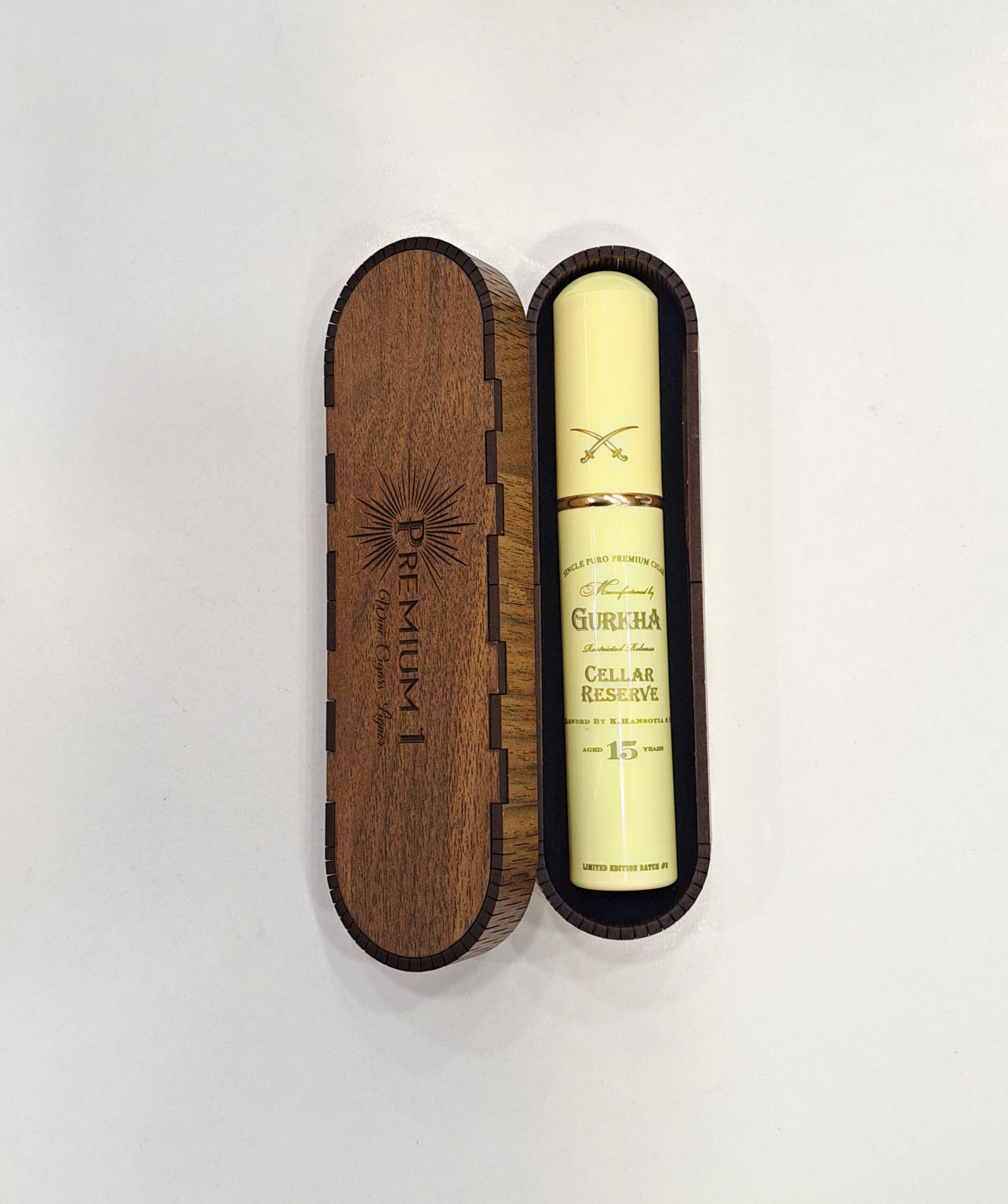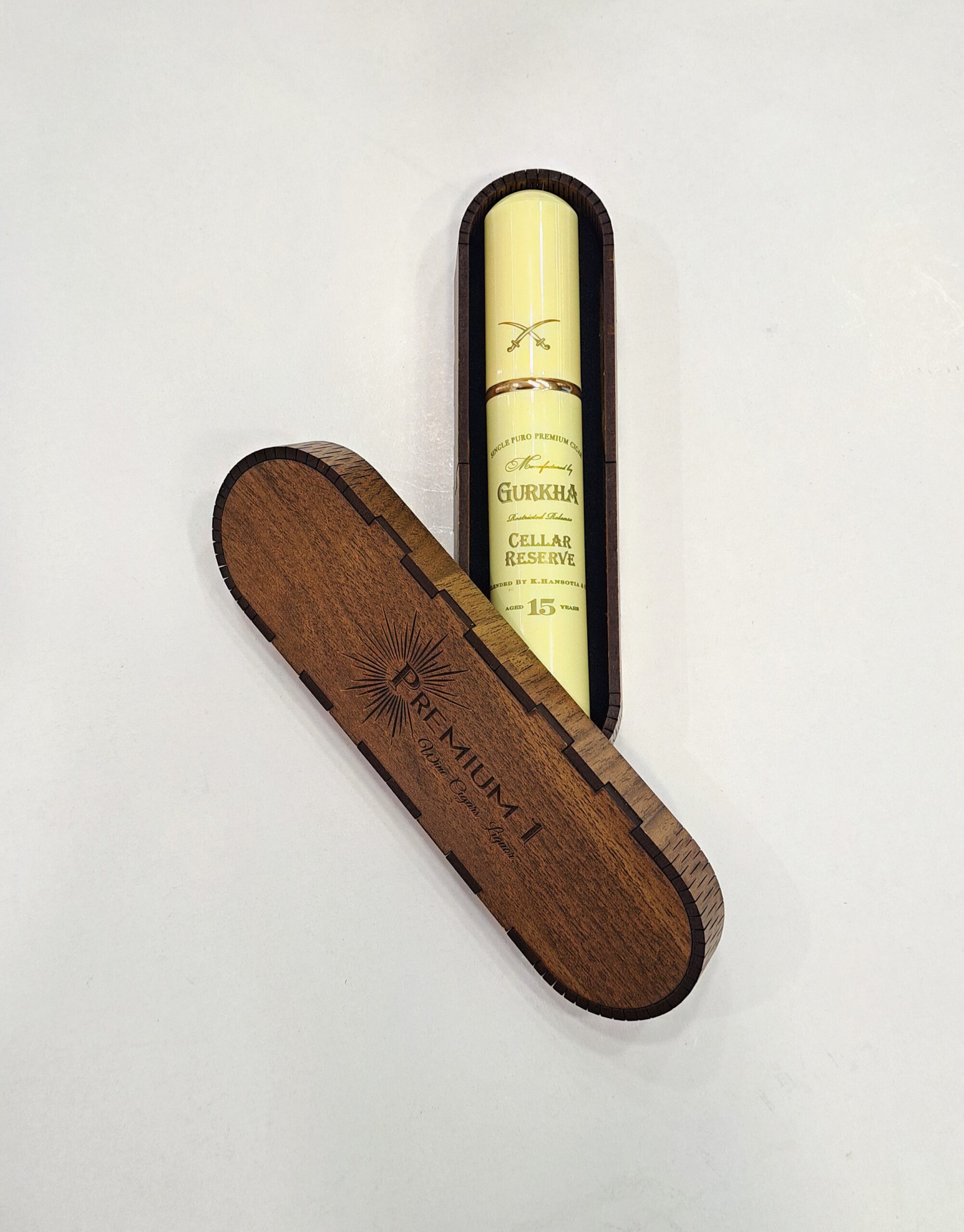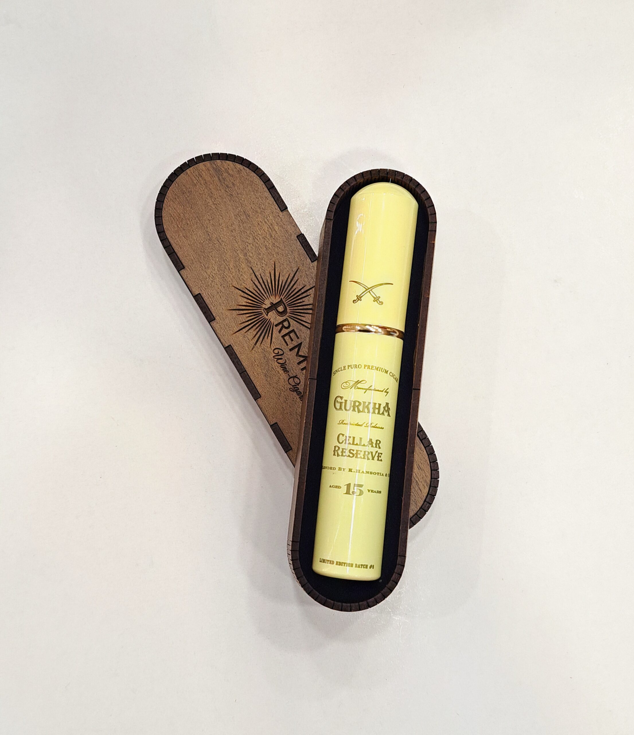 Kuti druri me 1 cop puro Gurkha Cellar 15 years per dhurate