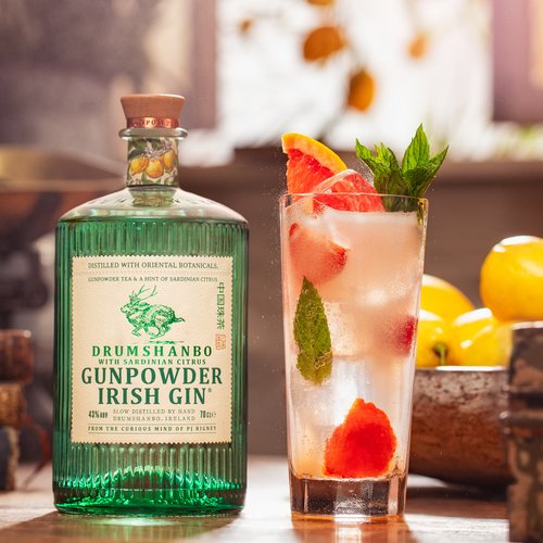 Xhini irlandez Drumshanbo Gunpowder me agrume sardiane është një shprehje freskuese dhe me aromë agrumesh e xhinit origjinal kryesor nga The Shed Distillery. Ai përmban "Sa Pompia" (Citrus monstruosa) të rrallë, një frut agrume i madh me lëkurë të trashë që gjendet vetëm në ishullin e Sardenjës.