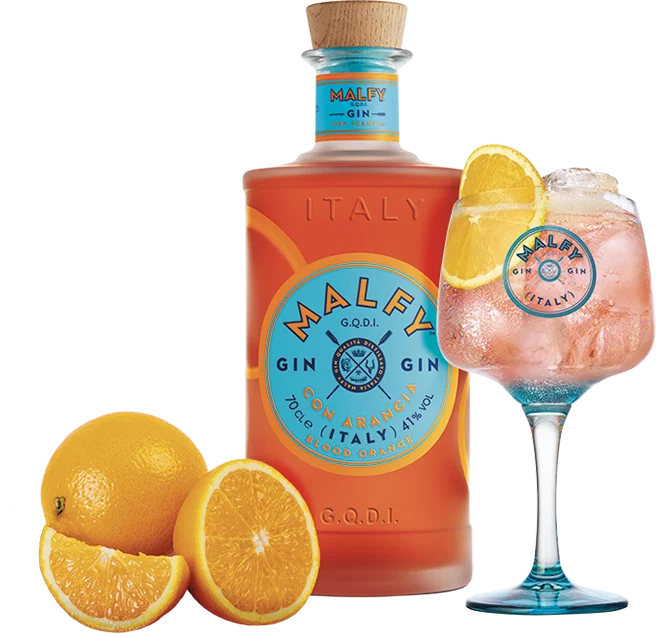 Malfy Gin Con Arancia është një xhin italian premium i përqendruar rreth aromave të gjalla të portokalleve të kuqe siciliane. I distiluar në Moncalieri, Itali, është i njohur për ngjyrën e tij të thellë portokalli të mrekullueshme dhe një profil shijeje që balancon ëmbëlsinë intensive të agrumeve me një bazë klasike dëllinje.